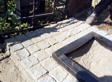 Ремонт покосившего памятника и оформление цветника брусчаткой